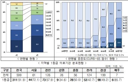 특히 80세 이상 환자의 중증도 분포는 경증 33.9%, 중등도 44.5%, 중증 20.6%로 나타나 고령층 폐렴 관리의 중요성이 확인됐다.