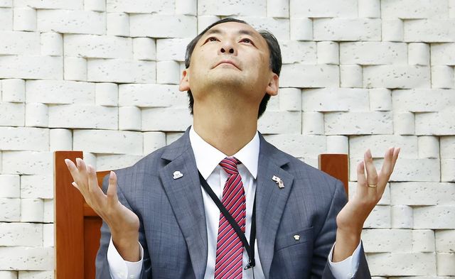 모스탄 미국 리버티대 교수(전 미국 국무부 국제사법 대사)가 지난 17일 서울 은평구 은평제일교회에서 열린 모스탄 전 대사 초청 간증 집회에서 설교에 앞서 기도하고 있다. / 뉴스1