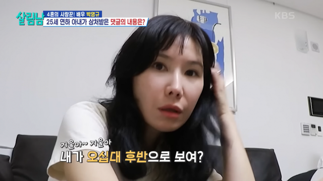 19일 방송된 KBS2 ‘살림하는 남자들 시즌2’에서는 박영규 부부의 일상이 공개됐다. 방송에서 이윤주는 “내가 50대, 60대처럼 보이냐”며 자신을 58세, 68세로 본다는 댓글에 충격을 받았다고 말했다. “은지원과 동갑인데 이모처럼 보인다” “나이 차이 안 나 보여” “두 분이 동년배 같다”는 악플에 억울함을 드러냈다.