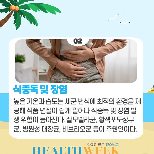 찌는 듯한 더위와 습한 날씨가 이어지는 여름은 활기 넘치는 계절이지만, 동시에 다양한 질병에 노출되기 쉬운 시기이기도 하다. 높은 온도와 습도는 세균 번식을 촉진하고, 냉방기 가용은 신체에 부담을 준다. 여름철에 특히 주의해야 할 질환들을 알아본다.