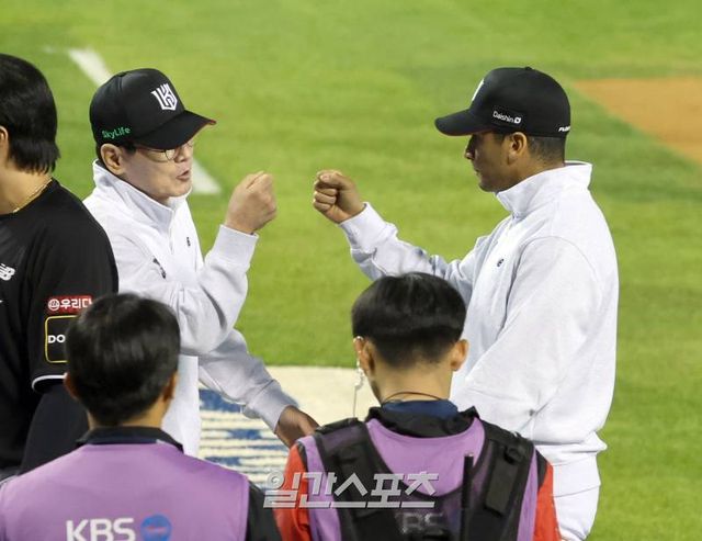 2일 오후 잠실구장에서 열린 KT위즈와 두산베어스의 2024신한쏠뱅크 KBO포스트시즌 와일드카드 결정1차전. KT가 4-0 승리했다. 경기종료후 이강철 감독과 선수들이 승리 세리머니하고있다. 잠실=정시종 기자 capa@edaily.co.kr /2024.10.02.