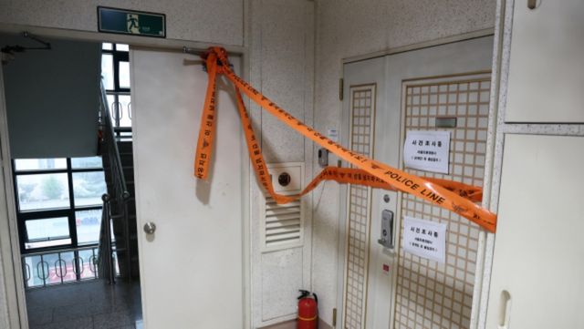 21일 인천에서 사제 총기를 발사해 가족을 숨지게 한 피의자의 주거지에 폴리스 라인이 설치돼 있는 모습. / 연합뉴스