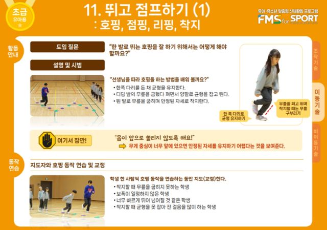 대한체육회는 유아·유소년 신체활동 지도자의 전문성 강화를 위한 ‘FMS for SPORT’ 교육자료를 온라인을 통해 본격 보급했다. 이번 교육자료는 유아부터 초등학생까지 성장단계에 적합한 기본움직임기술(FMS, Fundamental Movement Skills) 중심의 신체활동 프로그램이다.