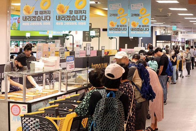 지난 17일 이마트가 준비한 '역대급' 초복행사에 서울 용산구 이마트 용산점에 고객들이 줄을 서고 있다 / 뉴스1, 이마트 제공