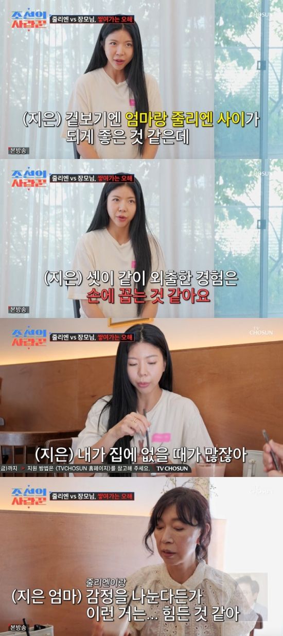 제이제이는 "겉보기에는 되게 좋은 거 같은데 사실 문제가 있긴 하다. 셋이 같이 외출을 하는 경험은 손에 꼽는 거 같다. 아무래도 줄리엔하고 저희 엄마는 친한 사이는 아닌 거 같다"라며 귀띔했다.