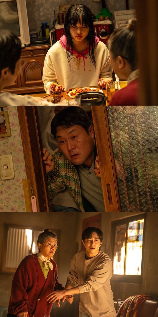 공개된 스틸은 ‘정환’(조정석)과 ‘수아’(최유리)가 좀비 떼로부터 도망치는 긴박한 순간부터 가족 간 훈훈한 정이 전해지는 장면까지 다채로운 감정선을 담아내며 눈길을 사로잡는다. 좀비 바이러스로 세상이 혼란에 빠진 와중에도 서로를 놓지 않으려는 ‘정환’과 ‘수아’의 모습은 예측불허의 긴장감과 깊은 유대감을 동시에 보여준다. 결국 좀비가 된 ‘수아’의 기억을 되살리기 위해 고군분투하던 ‘정환’과 ‘밤순’(이정은)은 과거 추억이 담긴 창고에서 ‘수아’를 마주하며 그녀에게 여전히 기억이 남아 있다는 희망을 얻는다.
