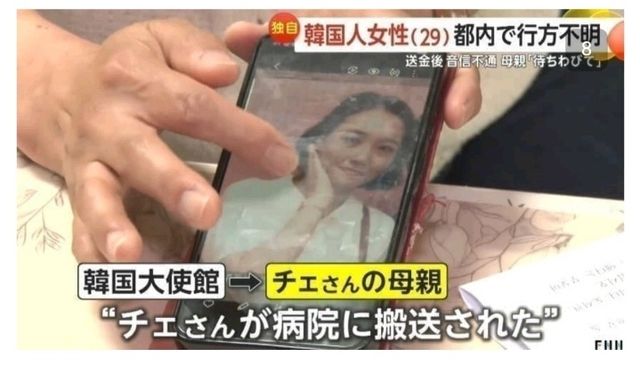 최씨 실종 사실은 지난 21일, 일본 <후지 뉴스 네트워크>(FNN) 프라임이 “지난달 27일, 일본에 입국한 한국인 여성이 이튿날 열사병 증세로 쓰러져 인근 병원에 구급차로 이송됐다”고 보도하면서 드러났다.