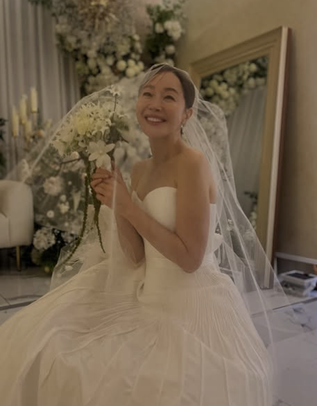 배우 엄지원이 순백의 웨딩드레스 자태를 공개했다.