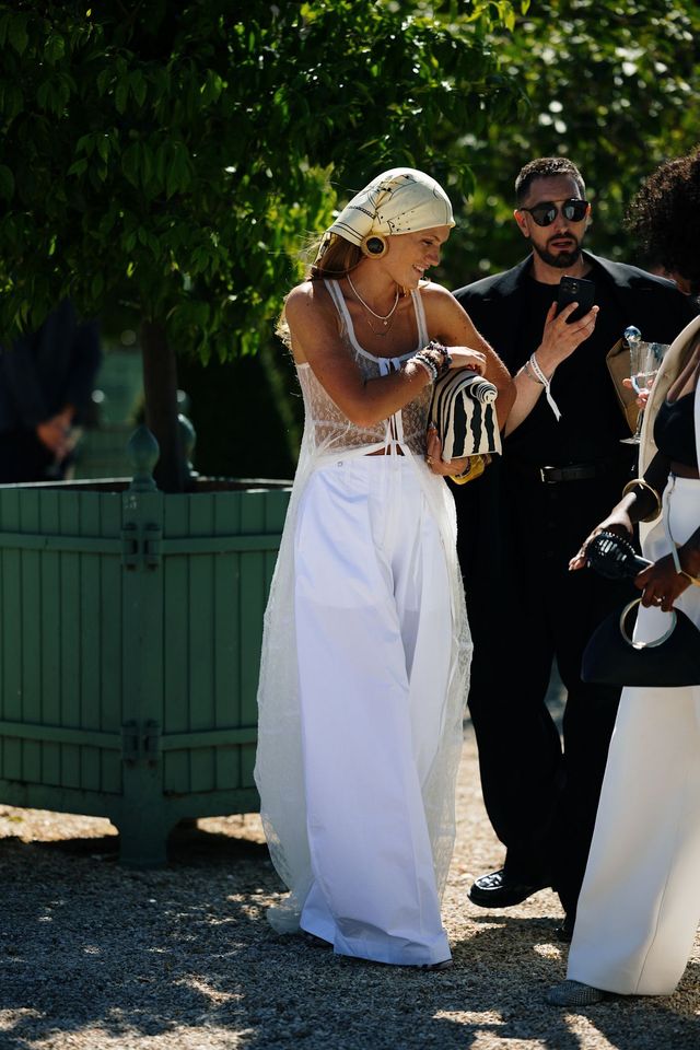 화이트 컬러의 와이드 팬츠 하나만 있으면 수많은 룩을 오갈 수 있죠. 화이트의 미니멀한 매력을 살리고 싶다면 심플한 크롭 톱에 슬릭한 액세서리를 더해주세요. 게다가 레이스 디테일이 은은한 롱 시스루 톱을 매치하면 로맨틱한 무드로 기분 전환을 꾀할 수 있죠. 여기에 헤드 스카프와 클래식한 백까지 더하면 바캉스 룩으로도 손색없습니다. 화이트 팬츠와 깔끔하게 톤을 맞추되, 상의의 소재나 디자인을 달리해 원하는 무드를 연출해 보세요.