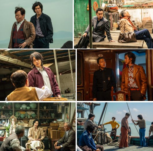 이어, ‘오관석’(류승룡)과 ‘김교수’(김의성)가 등을 지고 앉은 채 서로 다른 곳을 응시하는 모습은 속내를 알 수 없는 두 인물 간의 동상이몽을 보여주며 이들을 중심으로 펼쳐질 흥미진진한 전개를 기대케 한다. 생선이 담긴 바구니를 든 ‘오희동’(양세종)의 모습은 예측 불가능한 촌뜨기들의 행보를 암시하며 궁금증을 증폭시킨다. 여기에, 공권력이 최우선인 목포 경찰 ‘심홍기’(이동휘)가 등장해 “너 시방 날 어디로 댈꼬 온 거냐?”라며 ‘벌구’(정윤호)와 신경전을 벌이는 듯한 장면은 한순간에 긴장감을 불러일으킨다.