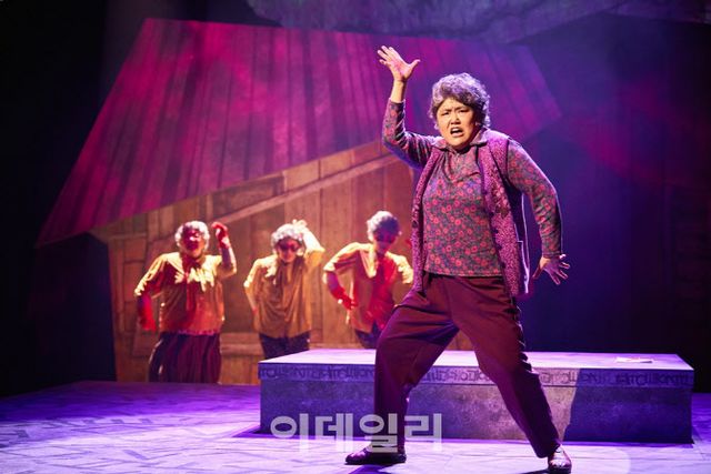 작품은 한국문화예술위원회의 ‘2024 공연예술창작산실 올해의신작’으로 선정돼 지난 2월 국립극장 하늘극장에서 초연했다. 영화 ‘칠곡 가시나들’과 에세이 ‘오지게 재밌게 나이듦’(북하우스)가 원작이다. 70~80대의 나이에 문해 학교를 통해 난생처음 글을 배운 칠곡 할머니들의 이야기를 재구성해 큰 호평을 받았다. 이번 상영은 지난 2월 국내 초연의 한 무대를 담았다.