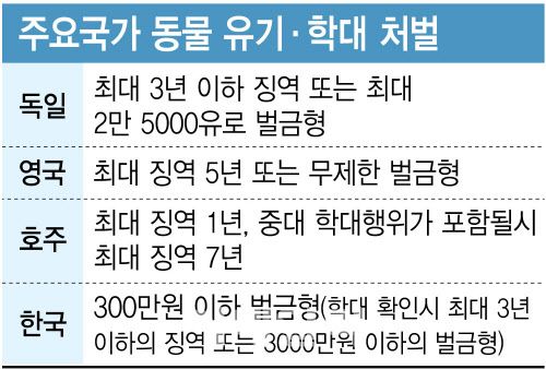 ◇해외는 무제한 벌금부터 징역 7년형까지 부과…“유기 처벌 강화해야”