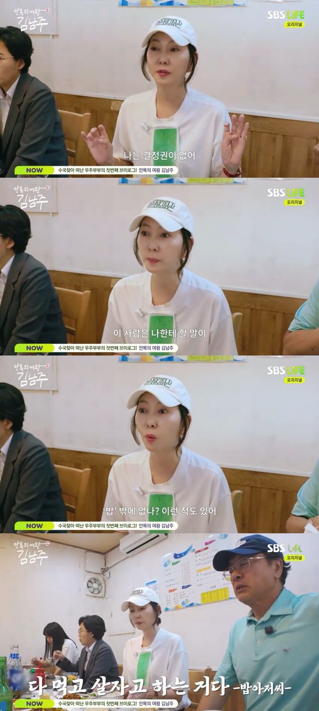 제작진은 두 사람에게 여행 가면 보통 무엇을 하냐고 물었고, 이에 김남주는 "이러고 있다. 먹고 마신다"라고 밝혔다.