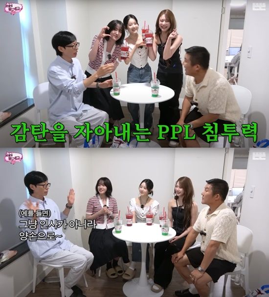 먼저 촬영 당일 아침 태국에서 막 입국한 스테이씨는 높은 텐션으로 스튜디오를 압도했다. 멤버들은 유재석, 조세호와 차례로 악수하며 반가움을 전했고, 깜짝 선물까지 건네며 분위기를 끌어올렸다.