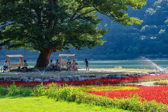 여름에는 해바라기, 가을에는 코스모스와 구절초, 봄에는 라벤더가 공원을 물들인다. 사랑 나무 아래 벤치에는 연인, 가족, 혼자 여행객이 앉아 쉬며 강을 바라보는 여유를 즐긴다. 비 오는 날엔 수채화 같은 분위기, 맑은 날엔 따사로운 햇살이 잔잔하게 번지는 공원은 누구에게나 조용한 위로가 되는 공간이다.