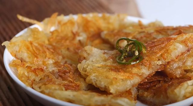 감자를 껍질째 깨끗이 씻어 채 썰고, 소금과 후추로 가볍게 간을 한 뒤 팬에 기름을 두르고 노릇하게 부치기만 하면 완성된다. 취향에 따라 당근, 부추, 양파 같은 채소를 더해 식감을 살려도 좋다. 겉은 바삭하고 속은 촉촉해 아이들도 쉽게 먹을 수 있고, 어르신들도 부담 없이 즐길 수 있는 담백한 맛이다.