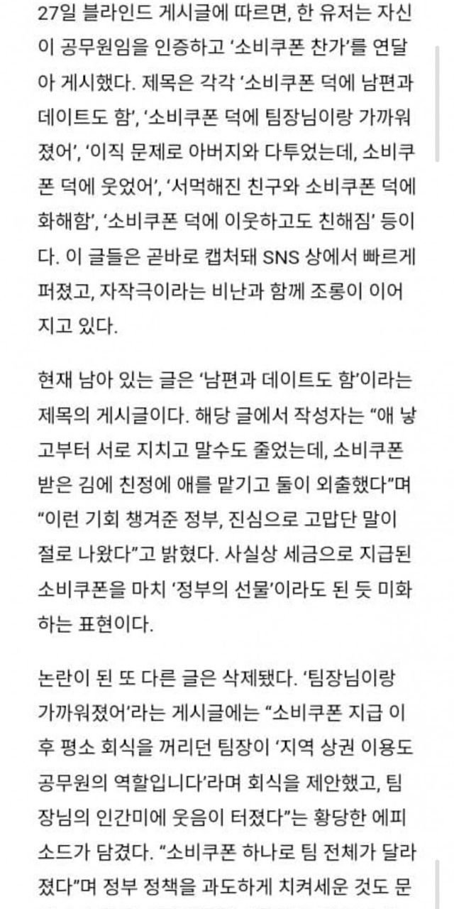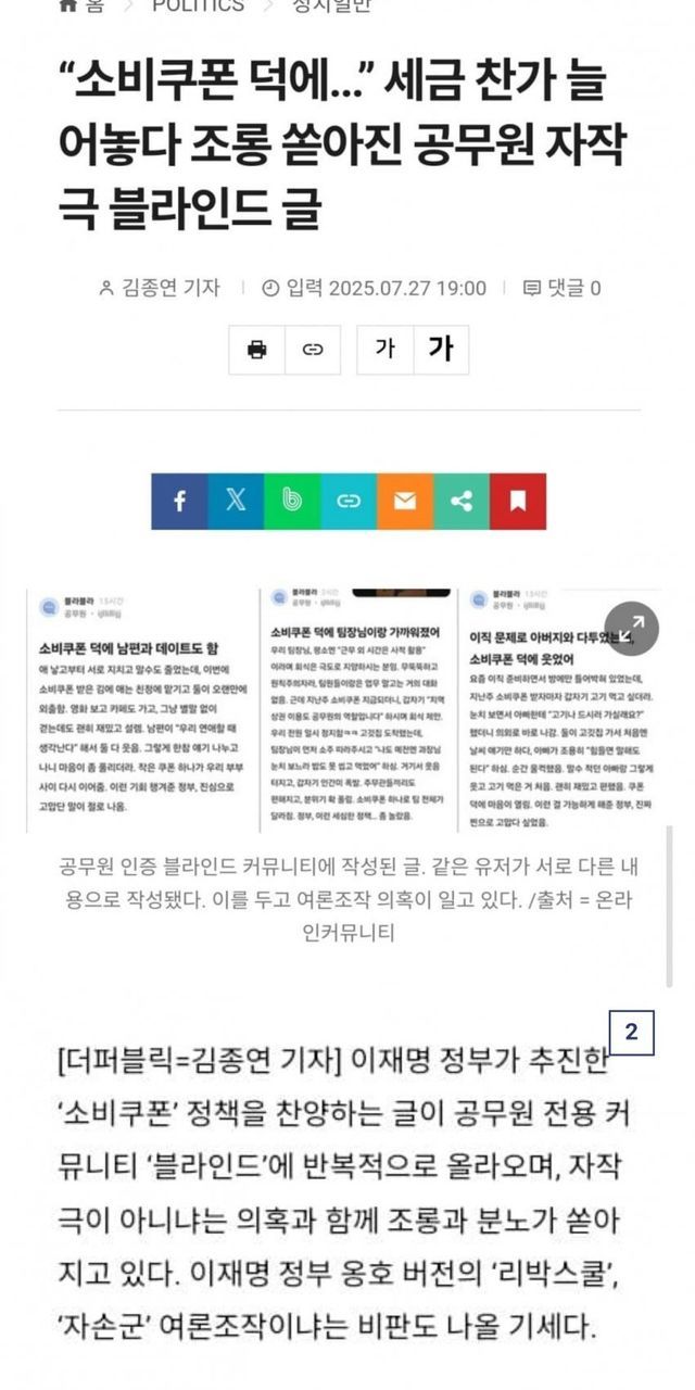 세금 찬가 늘어놓다 조롱 쏟아진 공무원 자작극 블라인드 글 .