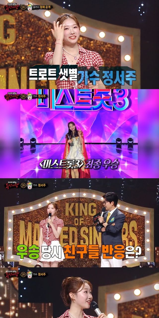 뒤이어 공개된 슬러시의 정체는 '미스트롯 3'에서 1위 '진'을 차지한 정서주였다.