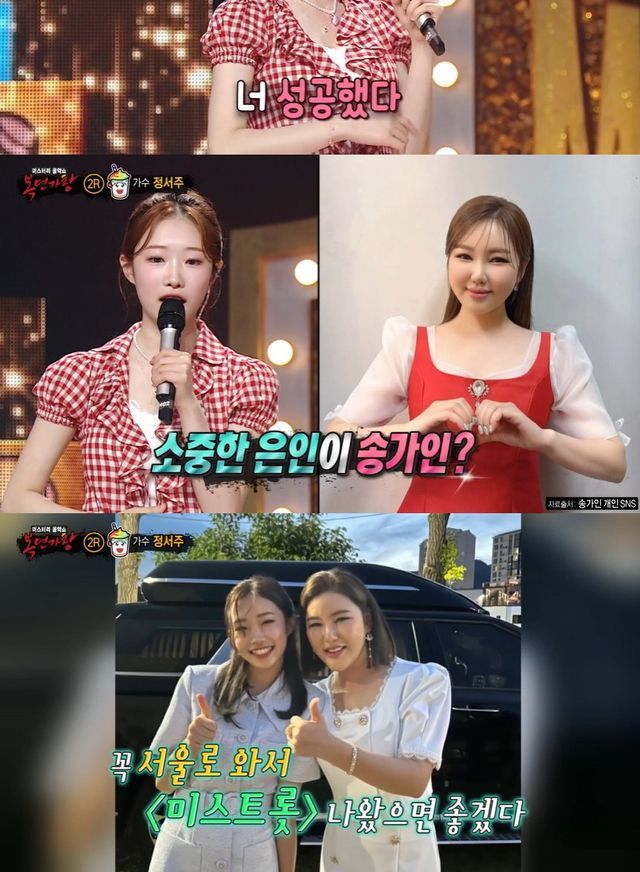 정서주가 '미스트롯 3'에 출연한 건 다름 아닌 송가인의 한 마디 때문이었다. 정서주는 "첫 행사에서 선배님께서 차에서 내리셔서 꼭 서울로 왔으면 좋겠다고, '미스트롯' 꼭 나오라고 말씀해 주셔서 그때 나가고 싶다고 결심하게 됐다"고 말해 훈훈함을 더했다.