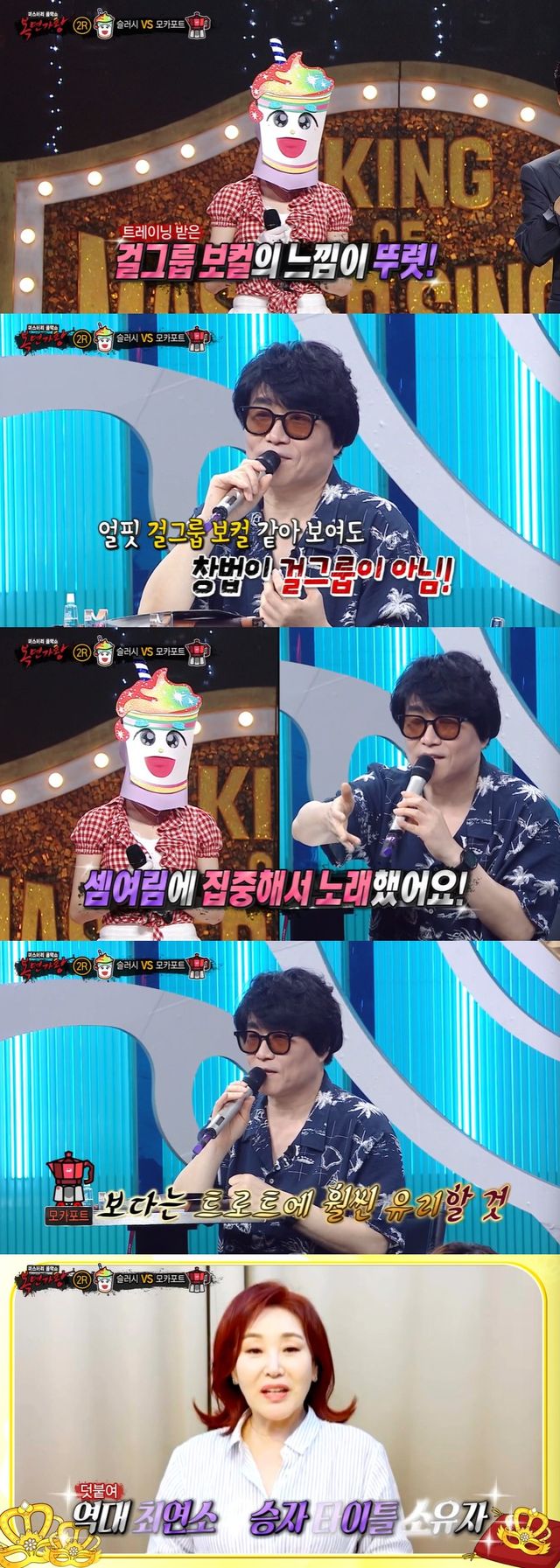 27일 방송된 MBC '복면가왕'에는 ARrC 도하를 꺾고 올라온 슬러시와 가수 미나를 꺾은 모카포트의 대결이 펼쳐졌다.
