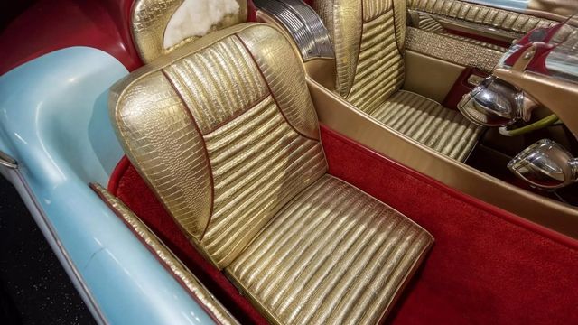 차량 내부 역시 외관만큼이나 화려하다. 시트와 도어 패널은 광택이 나는 금색 가죽으로 마감됐고, 밝은 빨간색의 카펫이 마련됐다. 가느다란 스티어링 휠은 흰색과 금색이 조화를 이룬다. 이 밖에도 원형 크롬 계기판을 다섯 개 탑재했다.