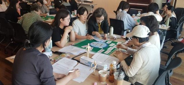 | ▲ 2025 고위기청소년 가족상담사 역량강화 아카데미 참가 상담사들이 매체를 활용한 가족상담 기법 실습을 하고 있다. |
