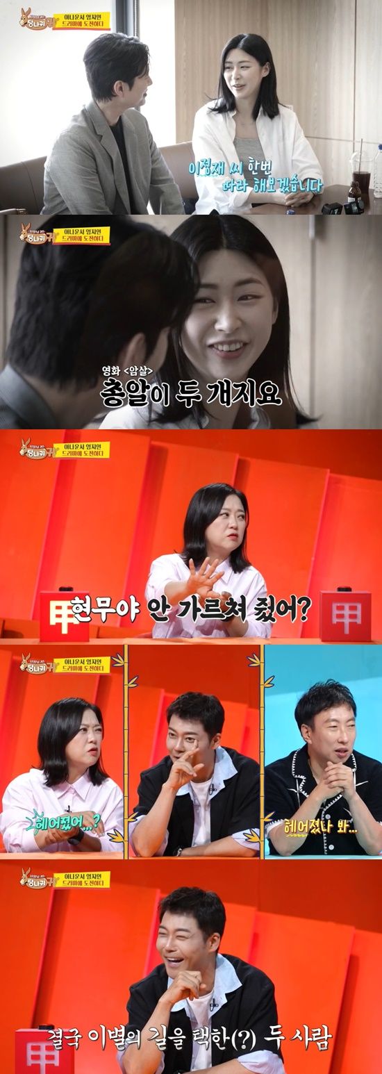 이날 드라마 '독수리 5형제를 부탁해!'에 캐스팅됐다는 엄지인은 "이번에 제대로 된 역할을 할 것 같아서 연기 수업을 잡아놓았다. 같이 수업 받으러 가자"라고 말했다.