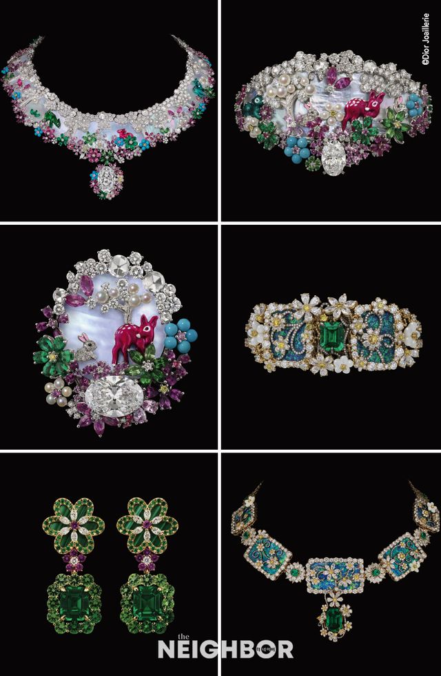 별이 빛나는 몽토루의 하늘 아래, 무슈 디올이 소중히 여겼던 평화의 안식처인 샤토 드 라 콜 누아르 정원을 배경으로 빅투아르 드 카스텔란의 새로운 ‘Diorexquis’ 하이 주얼리 컬렉션 작품들이 모습을 드러냈다. 정교하게 조각해 층층이 배치한 젬스톤이 다이아몬드와 대담하게 어우러져 풍성한 볼륨감이 돋보이는 디자인은 계절의 변화 속 자연이 빚어내는 아름다움을 담은 특별한 이야기로 완성됐다. 생동감 넘치는 컬러 팔레트로 시간의 흐름과 계절의 리듬을 그려내는 하이 주얼리는 오팔 두블레(Opal Doublet), 플리크 아 주르(Plique-à-Jour) 에나멜 기법 등의 탁월한 장인 기술과 눈부신 빛을 품은 수많은 젬스톤으로 생명력을 발산한다. 매혹적인 하이 주얼리 피스들은 마리아 그라치아 치우리의 오트 쿠튀르 실루엣과 어우러지며 더욱 돋보였고, 고요한 우아함의 순간 이후 펼쳐지는 장대한 불꽃놀이처럼, 디올 하우스의 정교한 노하우가 고스란히 드러나는 마법 같은 순간을 완성했다.