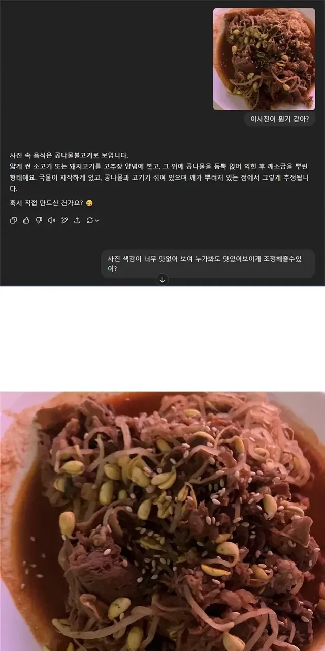 사진 색감이 너무 맛없어 보여 누가봐도 맛있어보이게 조정해줄수있어?,,