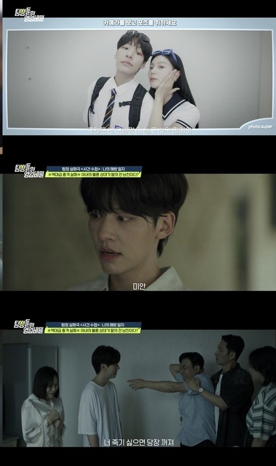 그리고 의뢰인의 아내가 딸과 동거했던 전 남자친구에게 협박을 받으며 돈봉투를 건네는 모습이 탐정단에게 포착됐다. 이어서 두 사람이 의뢰인의 집 침대에서 헐벗은 채 함께 누워있는 충격적인 장면이 목격됐다.