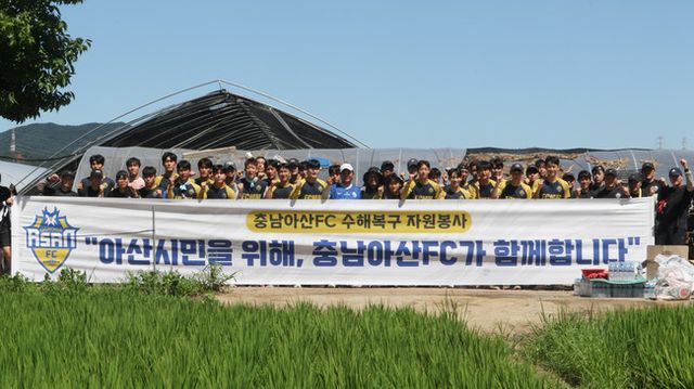 [인터풋볼] 박윤서 기자 = 충남아산FC 선수들이 휴일을 반납하고 수해 복구 자원봉사 활동을 위해 두 팔을 걷어붙였다.