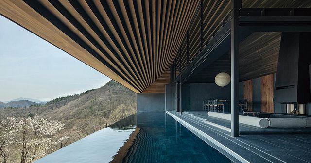 소유주가 직접 머물거나 호텔처럼 운영할 수 있는 ‘낫 어 호텔’이 군마현 미나카미에 새로운 공간을 열었다. 산 정상에 위치한 프라이빗 온천 단지로, 총 다섯 채의 빌라로 구성된다. 약 250m2 규모의 각 빌라는 15m 인피니티 풀과 핀란드식 사우나, 노천탕, 거실이 유기적으로 연결돼 있다. 특히 인피니티 풀과 거실에서는 180도 파노라마로 자연 절경을 감상할 수 있어 지상낙원이 따로 없다. 입주자 전용 레스토랑 ‘키기(Kigi)’에서는 지역 식재료를 활용한 장작불 요리를 즐길 수 있다. 도쿄 중심부에서 자동차 또는 열차로 약 2시간 걸린다.