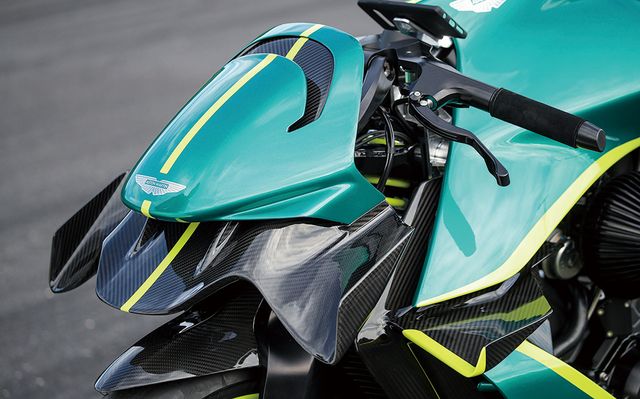 애스턴마틴이 영국의 전설적 모터사이클 브랜드 브로우 슈페리어와 손잡고 자사 최초의 모터사이클 AMB 001을 선보였다. 100대 한정 생산한 이 모터사이클은 수집가와 애호가들을 위한 예술품으로 평가받는다. 주행 성능 역시 압도적이다. V형 88도 997cc 터보차저 엔진은 최대출력 180마력을 발휘하며, 초경량 차체와의 조합으로 극한의 트랙 주행에서도 민첩한 응답성과 안정적 코너링을 제공한다. 알루미늄 더블 위시본 프런트 서스펜션과 프리미엄 브레이크 시스템은 고속에서도 정밀한 제어력을 보장한다. 차체는 카본파이버로 경량화했으며, 부품 하나하나에 항공 우주 등급의 소재를 적용했다. 여기에 정제된 에어로다이내믹 설계를 더해 고속 주행 중에도 뛰어난 다운포스를 유지한다.
