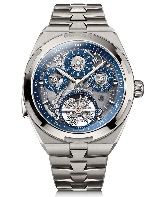 바쉐론 콘스탄틴이 창립 270주년을 맞아 전례 없는 타임피스를 공개했다. 브랜드의 아이코닉 스포츠 워치 컬렉션 오버시즈에서 최초로 미닛 리피터, 퍼페추얼 캘린더, 투르비용 세 가지 하이 컴플리케이션을 동시에 품은 오버시즈 그랜드 컴플리케이션을 선보인 것. 특히 미닛 리피터의 구조적 특성상 방수 기능을 구현하는 건 매우 까다로운데, 메종은 약 1년 반에 걸친 연구 개발 끝에 30m 방수를 보장하는 케이스를 완성하며 기술적 정점을 찍었다. 지름 44.5mm, 두께 13.1mm의 슬림한 케이스 안에는 오픈워크 서브 다이얼과 윤년 주기 디스플레이를 정교하게 배치했고, 퍼페추얼 캘린더는 2100년까지 별도 조정 없이 정확한 날짜를 가리킨다. 6시 방향에는 바쉐론 콘스탄틴을 상징하는 말테 크로스를 형상화한 대형 투르비용 케이지가 자리하고, 백케이스에는 제네바 홀마크와 창립 270주년 기념 엠블럼을 새겨 소장 가치를 높였다.