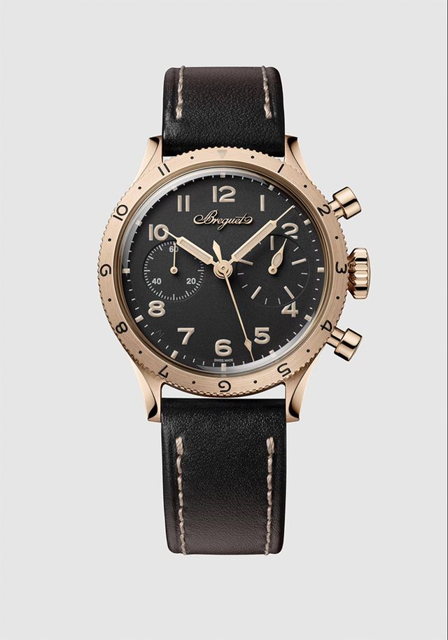 브레게가 창립 250주년을 맞았다. 영겁의 시간을 기념하기 위해 브레게는 전설적 서브스크립션 회중시계를 손목시계로 재현한 클래식 서브스크립션 2025를 시작으로 ‘트래디션 7035 리미티드 에디션’을 선보였고, 세 번째 주인공으로 ‘타입 XX 크로노그래프 2075’를 발표했다. 이 시계는 1950년대 프랑스 공군용과 민간용으로 만든 ‘타입 XX’의 궤를 잇는 모델로 블랙 또는 실버 다이얼 두 가지 버전으로 선보인다. 사진 속 블랙 다이얼 시계는 항공기에 두랄루민 소재를 최초로 도입한 브레게의 업적을 강조한 모델이다. 7~8시 방향에서 확인할 수 있는 원소기호 Al이 그 증표다. 3시 방향의 미닛 카운터, 커다란 아라비아숫자 인덱스 등 오리지널 디자인을 고스란히 재현했으며, 무브먼트의 표면에는 대서양을 횡단한 브레게 19 비행기와 그의 경로, 유럽과 북미 해안선을 각인해 역사의 한 페이지를 작은 시계 안에 담았다.
