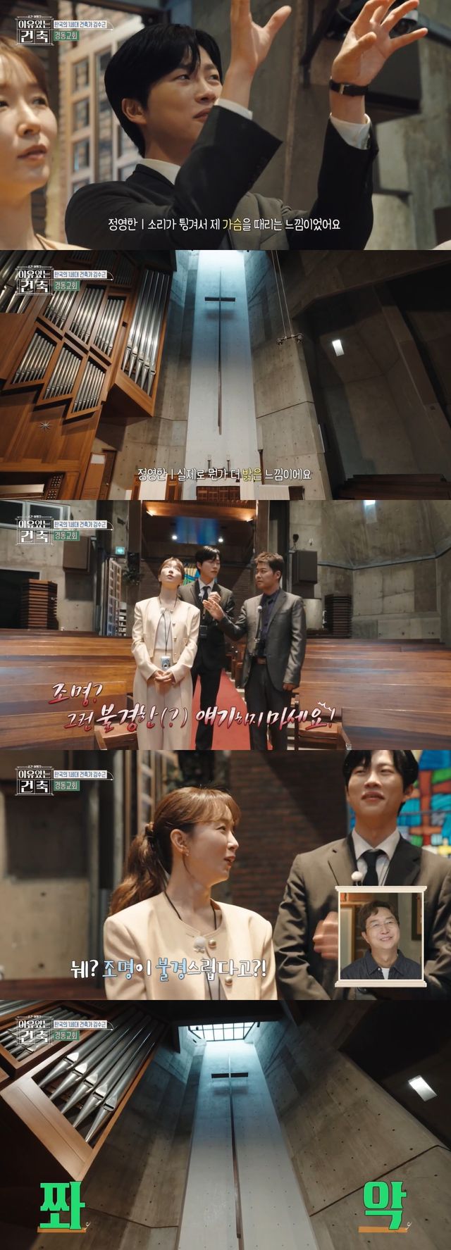 특히 정영한은 경동 교회의 십자가를 바라보며 "그리고 아까 빛이 가운데로 모이는 느낌이라고 하셨잖아요. 실제로 뭔가 더 밝은 느낌이다"라고 궁금증을 드러냈다.