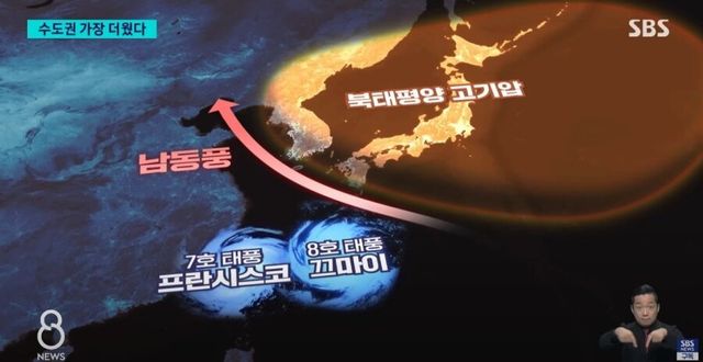 8호 태풍은 정면으로 돌파했으나 열돔에 공중분해됨.