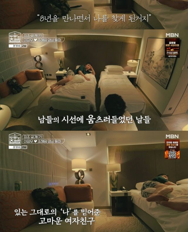 그러자 이장우는 "내가 여자 친구를 만나고 진짜 나를 좀 찾았다"며 "8년을 만나면서 나를 찾게 됐다. 처음엔 되게 겁났는데, 살이 찌고 배역도 안 들어오고, 사람들 욕 엄청 한다. 그래도 '이게 나야'라고 인정하는 순간 또 다른 길이 열리더라"라고 연애 후 달라진 점을 드러냈다.