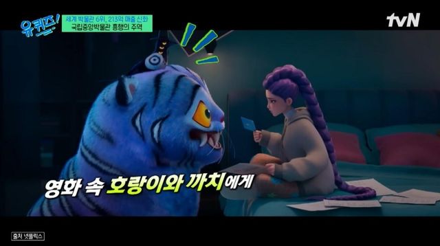 극 중 '더피'와 '서씨' 가 민화 '작호도'를 모티브로 한 사실이 알려지면서 국립중앙박물관 굿즈가 인기를 끌고 있다. / 유튜브 '유 퀴즈 온 더 튜브' 영상 캡쳐