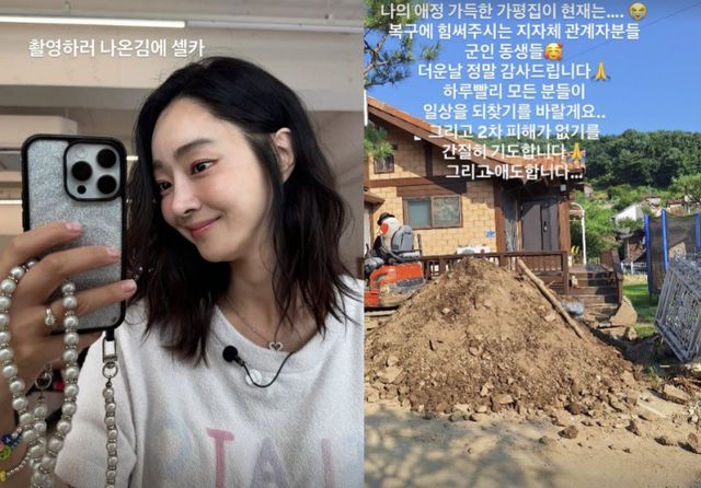 앞서 서효림은 지난 20일 경기도 가평에 위치한 별장에서 폭우로 인한 산사태 피해를 입었다고 알렸다. 그는 “전화가 이제서야 조금씩 연결이 되고 도로가 유실돼서 고립된 상태”라고 전해 걱정 받았다.