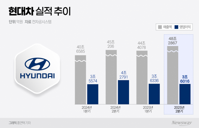 특히 현대차·기아의 경우 25% 관세 부과 시 내년 영업이익이 9조1000억원이 줄어들 것이란 어두운 전망이 나오기도 했다. 실제 25% 관세 부과가 본격화한 올 2분기 현대차·기아의 영업이익은 1조6000억원이 줄기도 했다. 구체적으로 현대차와 기아가 각각 8282억원, 7860억원 감소했다.