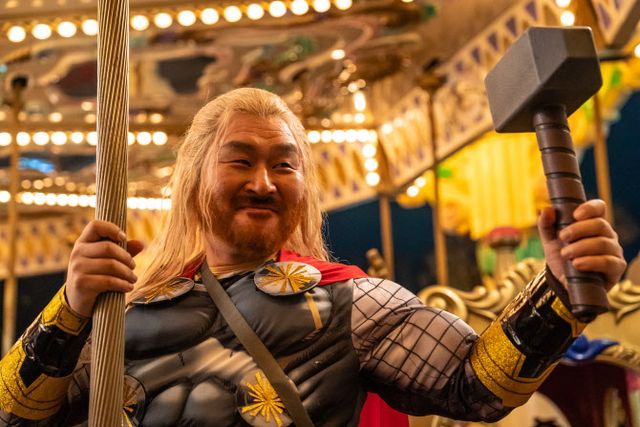 좀비가 되어버린 딸 수아(최유리 분)의 기억을 되살리기 위해 가장 좋아했던 장소인 놀이공원에 함께 가기로 한 정환(조정석 분)과 동배(윤경호 분). 놀이공원 입장 할인을 받기 위해 토르 코스프레를 한 채 등장한 동배의 압도적인 비주얼은 ‘좀비딸’의 넘버원 웃음 버튼이다. 여기에 “토르? 도른 거 아니냐?”라는 밤순(이정은 분)의 찰진 애드립이 더해져 관객들의 폭소를 유발한다. 윤경호가 가장 기억에 남는 촬영으로 꼽은 동배의 토르 분장에 뜻밖의 비하인드가 있었으니, 원래는 할리퀸이 될 뻔했다는 것이다. 할리퀸 캐릭터를 참고해 논의하던 과정에서 보다 자연스러운 흐름을 위해 필감성 감독이 토르를 제안했고, 그렇게 ‘동토르’가 탄생할 수 있었다.