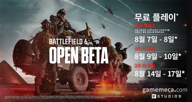 오는 10월에 출시되는 FPS 기대작 ‘배틀필드 6’를 출시 전에 무료로 체험할 수 있다. 8월에 두 번에 걸쳐 게임 구매 및 별도 키 없이 모든 유저에게 열리는 오픈 베타를 실시해 게임성을 최종적으로 점검하는 시간을 가진다.