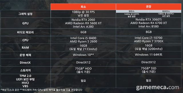▲ 배틀필드 6 오픈 베타 PC 사양 (자료출처: 게임 공식 홈페이지)