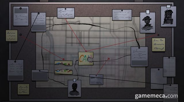 ▲ 보드에 적힌 단서, 추리로 답을 알아낸다 (사진: 게임메카 촬영)