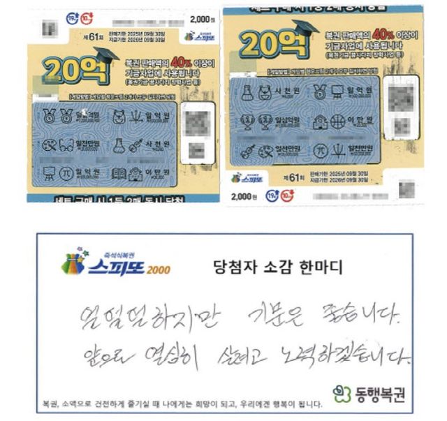 지난달 29일 복권 수탁사업자 동행복권은 ‘스피또2000 61회차’ 1등에 당첨된 남성 A씨와의 인터뷰를 공개했다.