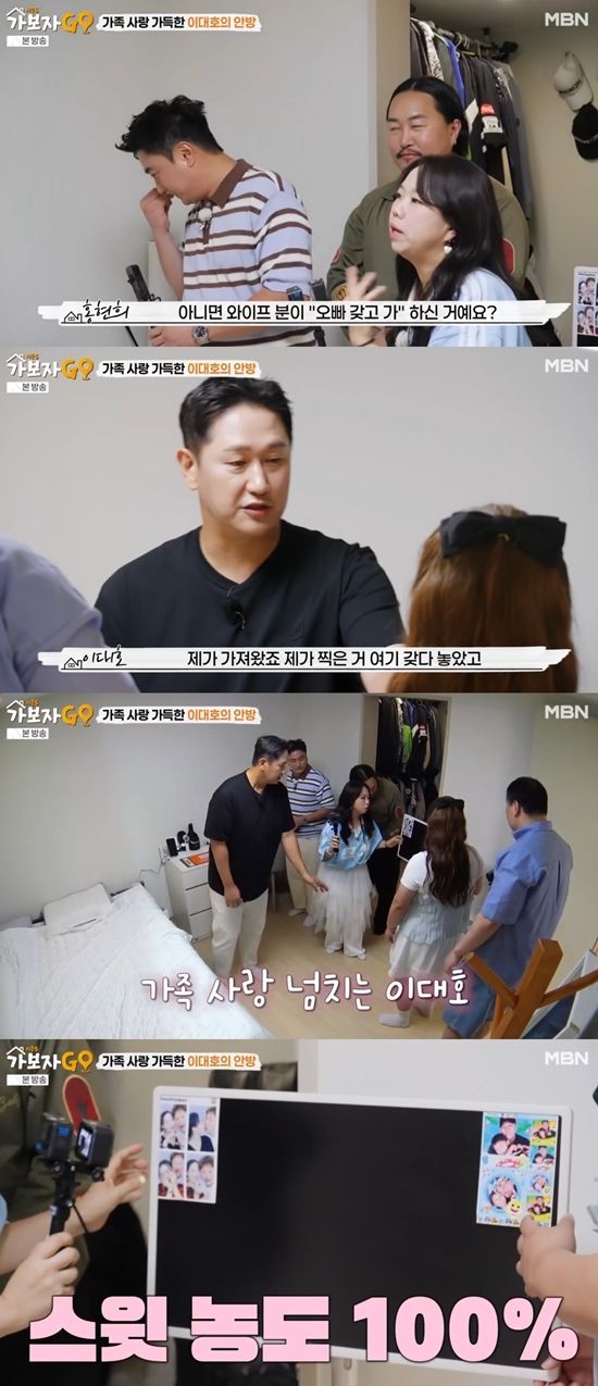 이대호의 침대 옆에는 가족사진이 놓여있었다. 홍현희가 "아내가 (사진을) 가져가라고 한 거냐"라고 묻자, 이대호는 "제가 가져온 거다. TV도 안 보고 사진만 본다"라며 가족에 대한 애정을 드러냈다.