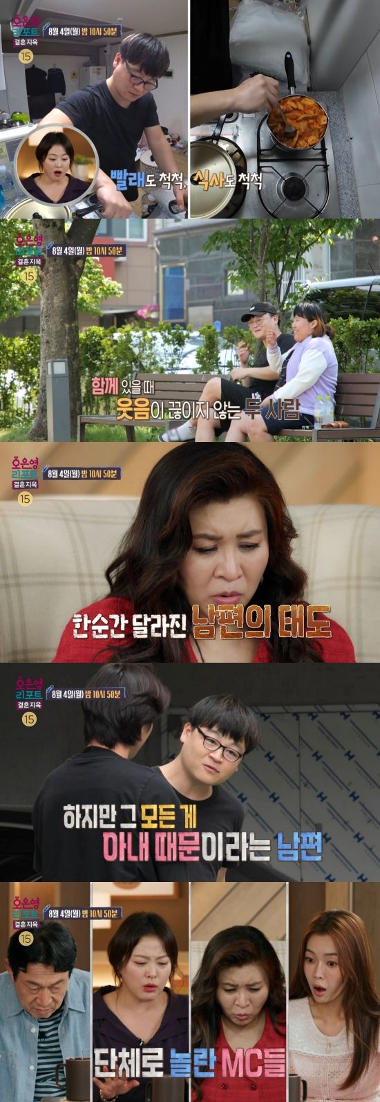 이날 방송에서는 극단적인 싸움만큼이나 심각한 두 사람의 문제가 발견된다. 공개된 일상 영상에서 남편은 점심 식사로 김치찌개를 준비한다. 그런데, 냄비에 찌개 토핑 재료를 넣은 남편은 요리하다 말고 화장실로 가더니 화장실 변기 옆에서 김치통을 꺼내 와 스튜디오에 있는 모두를 충격에 빠뜨린다.
