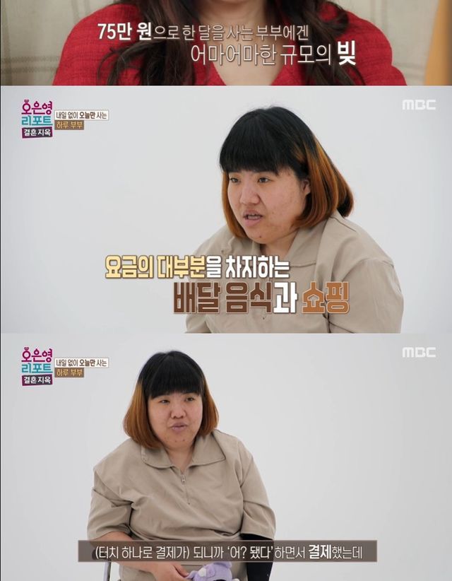 이어 아내는 "저는 (휴대 전화 소액 결제 미납금) 빚만 한 275만 원"이라며 요금 대부분은 배달 음식과 쇼핑이 차지한다고 전했다.