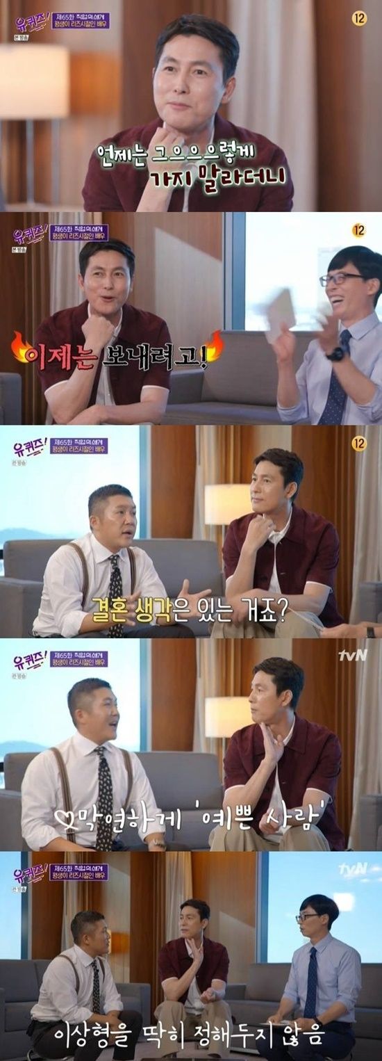 정우성은 지난 2020년 tvN 예능 '유 퀴즈 온 더 블럭'에 출연해 한 설문조사에서 '결혼 소식 듣고 싶은 남자 스타 1위'로 꼽힌 것에 대해 "언제는 그렇게 가지 말라더니 이제는 보내려고"라며 넉살을 부렸다.
